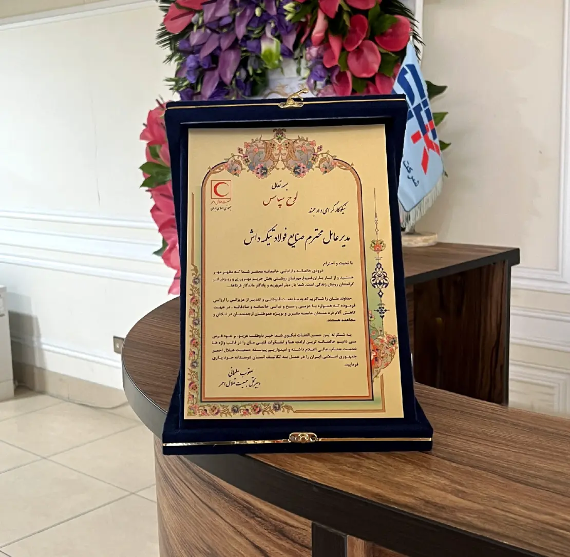 در بخشی از این لوح سپاس مدیرعامل جمعیت هلال احمر ایران خطاب به شرکت فولاد کاوه تیکمه داش آمده است؛ به شکرانه این حسن التفات نیکوی شما خیر داوطلب عزیز بر خود فرض میدانیم، خالصانه ترین ارادت ها و تشکرات قلبی مان را در قالب واژه ها ، خدمت جنابعالی اعلام داشته و امیدواریم پیوسته جمعیت هلال احمر جمهوری اسلامی ایران را در عمل به تکالیف انسان دوستانه خود یاری فرمایید.